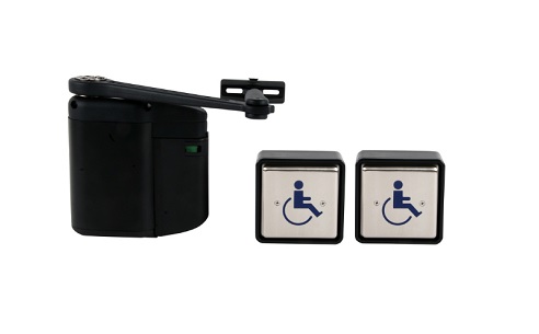 This heavy-duty, low energy operator is intended for high traffic manual opening applications that occasionally require automatic operation like retail outlets, banks, schools or universities. A Regenerative Power System charges an onboard battery pack that eliminates the need to run electrical wire to the unit. When used in automatic mode 25% of the time or less, the 5800 Series ADAEZ PRO will self-generate enough power to charge the battery pack for up to 12 years.