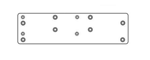 For use when the presence of a surface or concealed overhead door holder prevents normal mounting of closed body due to interference between closer's mounting screws and door holder track. This drop plate's mounting screws are located on the door surface 2-3/8" down from the frame rabbet allowing room for placement of the surface mounted or overhead concealed door stop/holder.