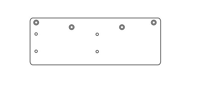 For use where a narrow top rail prevents the closer from being mounted directly to the door surface. This drop plate can be used to mount a closer on a top rail as narrow as 2-1/2" (64mm) in height.
