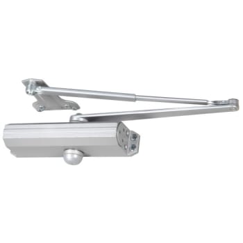 This application provides the most appealing design appearance for the 9300BC series door closer. It is on the push side of the door and the arm assembly extendsalmost parallel to the door. In the closed position, there is very little or no hardware projecting beyond the frame face in most situations.