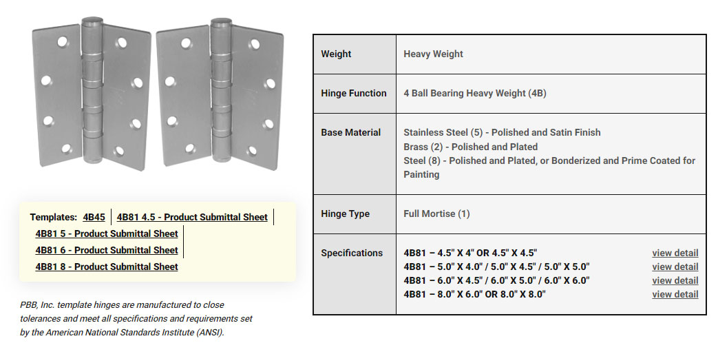 High quality door hinges for commercial and some residential applications. Maintaining the highest product quality.