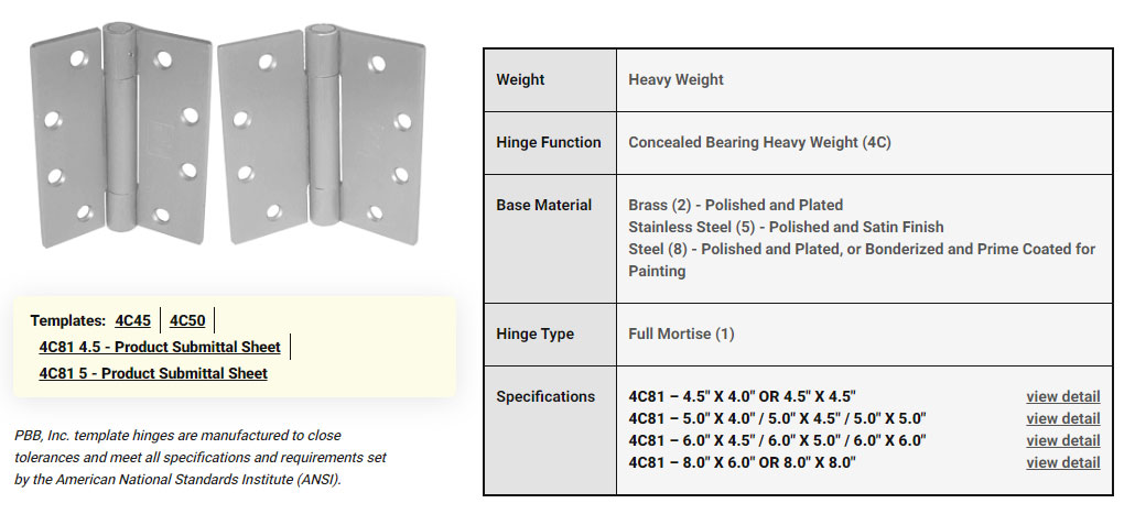 High quality door hinges for commercial and some residential applications. Maintaining the highest product quality.