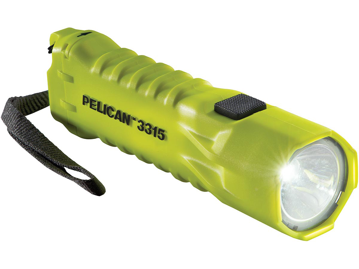 The PelicanTM 3315 LED Flashlight: the lightweight compact design houses 3AA batteries that power a single LED for 160 lumens of super bright LED light