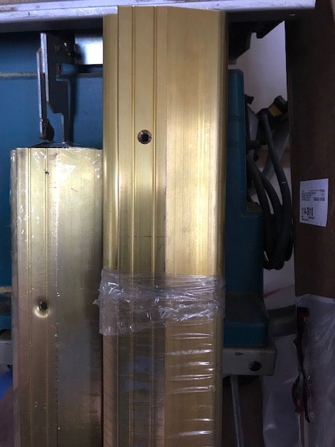 96" Interlocking Threshold in Mill Brass, Width: 3 1/2", Height: 5/8", furnished with Pemko #61 Hooks & Nails