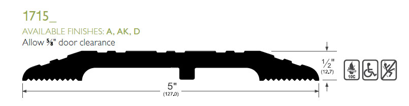 Heavy Duty Threshold, Length: 36", Width: 5", Height: 1/2", Material: PemKote™ Aluminum, Fire Rated, ADA Access Rated, Slip resistant