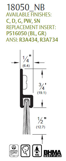 Pemko 18050CNB 36" Clear Anodized Aluminum Door Bottom Sweep - Nylon Brush insert