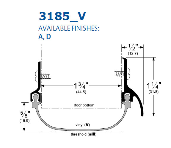 Pemko 3185AV 48" Mill Finish Aluminum Specialty Door Bottom with Vinyl insert