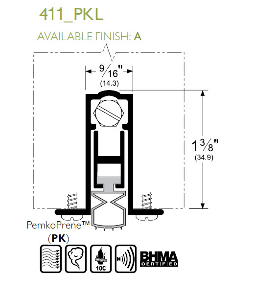 A: The Pemko 411APKL 36" Automatic Door Bottom with Pemko Prene insert - Mill Finish Aluminum - Full Mortise Mount