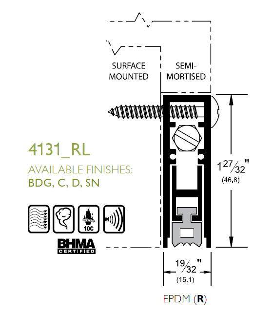Pemko 4131CRL 36" Clear Anodized Aluminum Automatic Door Bottom with EPDM insert - Surface/Semi-Mortise Mount - Left Hand
