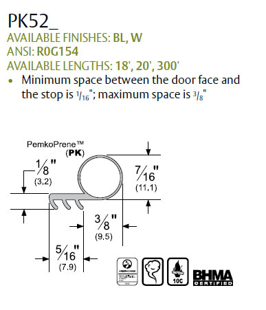 Pemko PK52BL 20 PemkoPreneĀ® Kerf-In Weatherstrip - Black - 20' length
