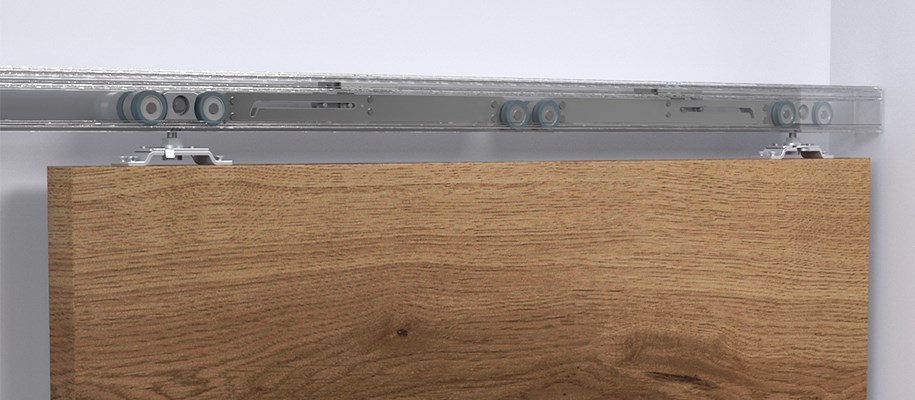 Heavy duty hardware supports doors up to 200 lbs. each leaf