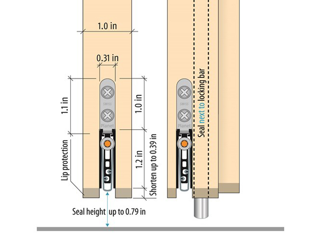 Pemko Planet US-FHRD Automatic Door Bottom: Mortised, Narrow, 36"