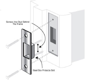 Reinforces door jamb for added strength and security