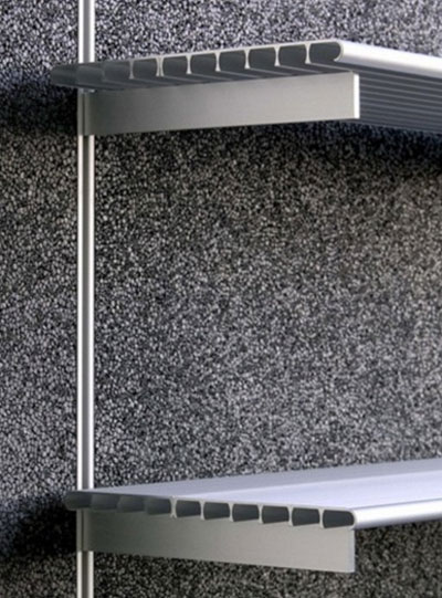 Designed for maximum functionality, Rakks shelf support brackets feature infinite adjustability. Manufactured from extruded aluminum with an attractive clear anodized finish, they are designed to attach to Rakks standards and pole supports without slots or visible hardware