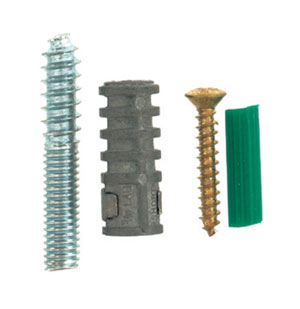 • Stop comes with an oval head wood screw, plastic plug, hanger bolt, and lead anchor