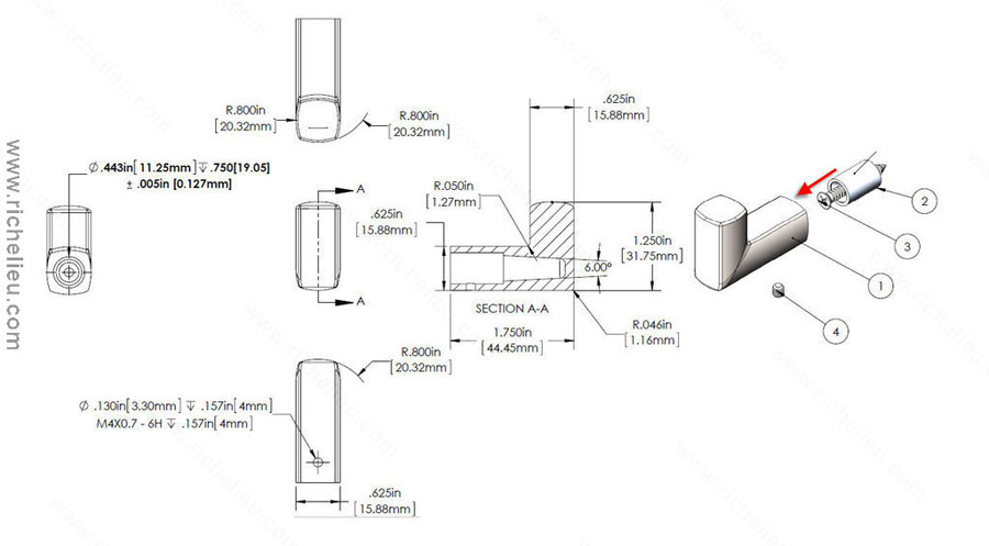 Richelieu 6800IP Rubber Tip for Flip-Down Door Stop #68