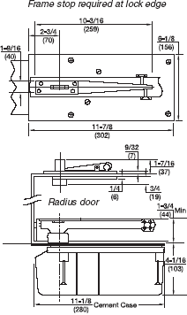 28 Series floor closers are single acting and handed. A frame applied stop at 0° must be used to prevent closer from closing beyond 0°.
