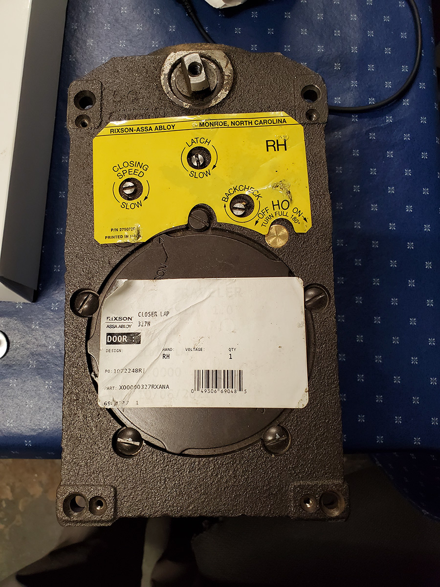 When you see the letter E at the beginning of a Rixson and part number it means electrified but we are all, the three of us, in agreement that there's no way to electrify that door closer by any chance is there anything electrified on that door?