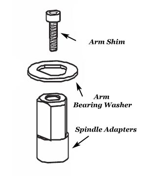 Shallow Depth Floor Closer Spindle Adapter Package, Includes Shim Socket Screw and Washer,, Each