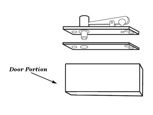 The weight of the door is supported entirely by the bottom arm, which is directly connected to the floor closer spindle.