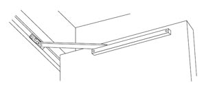 The jamb bracket mounts on the stop strip with wood or machine screws. The channel or door bracket mounts with sex bolts