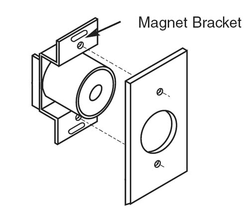 • Anchor the electromagnet firmly since the wall portion will function as a door stop.