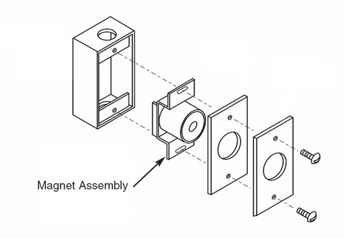 • Anchor the electromagnet firmly since the wall portion will function as a door stop.
