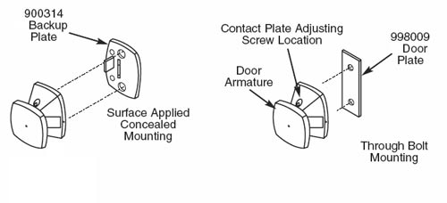 • Door-mounted contact plate includes hardware for through-bolting or concealed mounting.