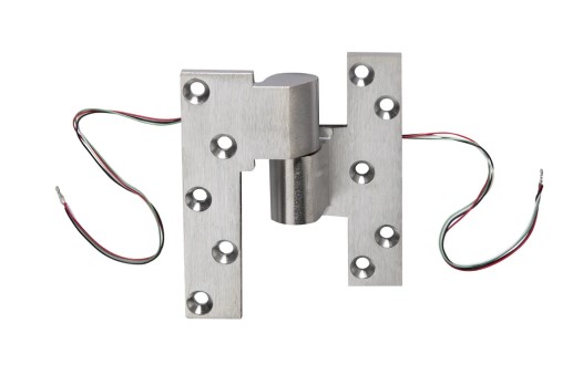 Electrified Intermediate Pivot, 3/4" Offset Power Transfer, Satin Brass Finish, Left-Handed, 1 Each