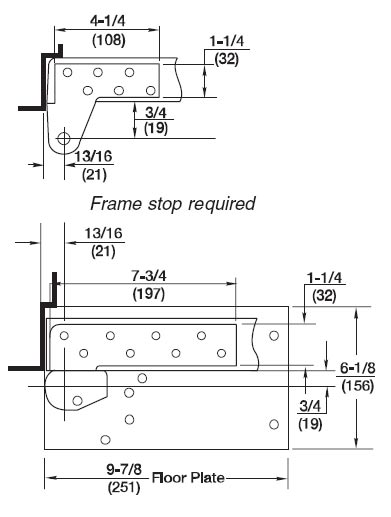 Selective Hold-Open (SHO) Factory-installed on 27 & 28 Series closers. Hold-open may be turned on/off. Automatic Hold-Open (AHO) Available on certain series closers with or without dead stop. Preset at factory for specific degree of hold-open. Degree of hold-open cannot be changed, nor can closer be made into non hold-open. Delayed Action (DA) Provided on barrier-free installations. Permits door to remain ajar (at 70°) for up to 30 seconds. Operates by separate valve and can be shut off if not needed. Not available on closers furnished with cold weather fluid, and not recommended for exterior applications because of weather factors. (27 & 28 series only) Physically Handicapped (PH) To comply with guidelines established in the American With Disabilities Act, lighter opening forces are met if closers are ordered with a PH prefix. If 5 pounds of opening on interior doors is needed, simply order PH. If 8.5# of force is needed, specify Prefix PH and suffix 8.5#. Be advised that lower opening forces mean lower closer forces. PH products should not be ordered for exterior doors or fire rated openings. Fire/Lifesafety openings take precedence over the convenience of ADA. Securing a building is also a major concern and a lighter closer may not be strong enough to secure a latch bolt in a strike. Use care when specifying PH products. Cold Weather Fluid (CWF) Should be considered in installations where ground temperature is constantly below +15°F.May be used in temperatures as low as -35°F. Sealed Closer (SC) Used where water contact may occur. Provides gasketing and a cover plate that are epoxied around the case with the closer inside.Not available for replacement closers unless cement case is also replaced. Fire Rated (F) Used on labeled fire door requiring steel base pivot. PH with 3 pounds of opening force may not be used on fire doors.
