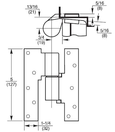 • Available to accommodate door thicknesses 1-3/4"(44mm), 2"(51mm), 2-1/4"(57mm), 2-1/2"(64mm), or 3"(76mm)–specify thickness when ordering