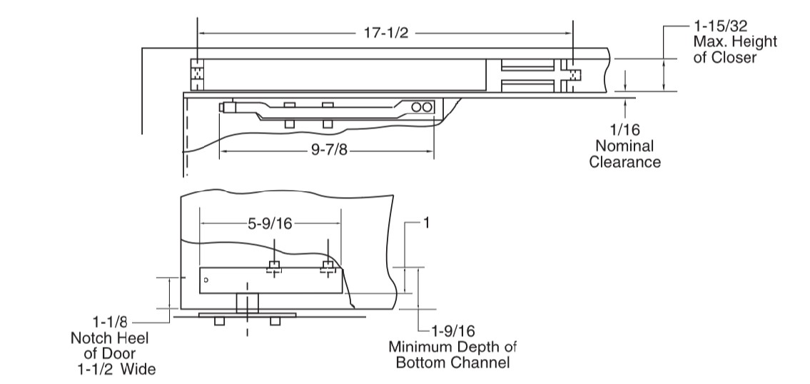 Rixson MW80690A 626 Overhead Concealed Center Hung Closer, 90 Degree, Hold Open, Wood Door/Metal Frame, Architectural Grade, Double Acting, Satin Chromium Plated