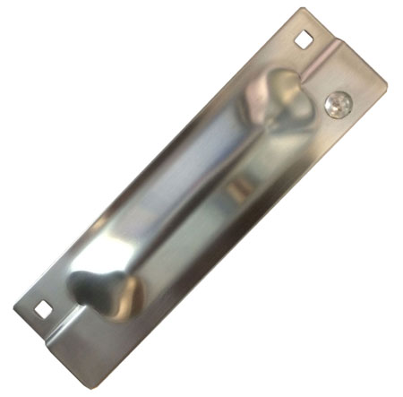3" x 11" silver coated latch protector with pin for outswinging doors and mortise locks.