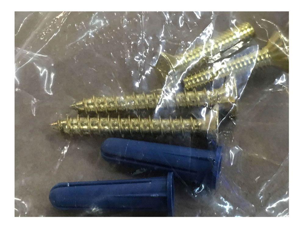 Fasteners: 2 ea. #12 x 1 1/2" FH WS, 2 ea. plastic anchors; 2 ea. #12 - 24 x 1" FH MS