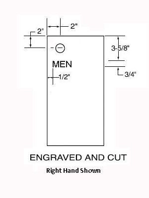Engraving: "MEN" 3/4" high condensed block letters with black enamel fill