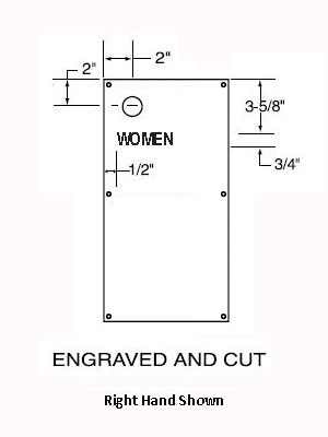 Engraving: "WOMEN" 3/4" high condensed block letters with black enamel fill