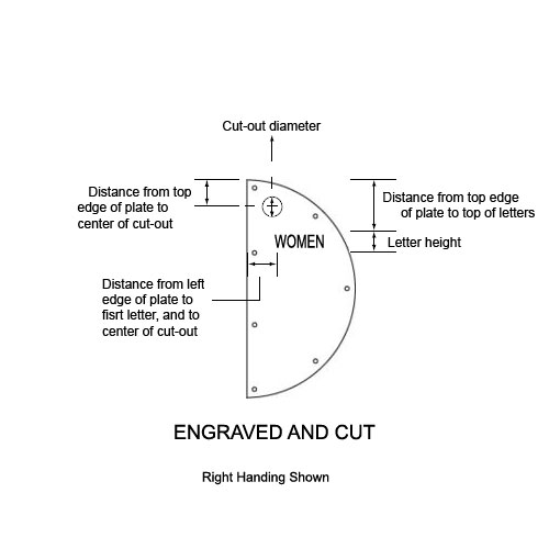 Engraving: "WOMEN"- 3/4" high condensed block letters with black enamel fill. Other letter heights are available. Please specify letter height and location.