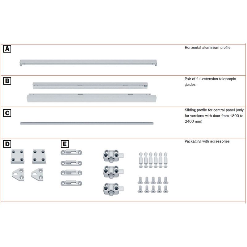 1 sliding profile for central panel (only for versions with door width from 1,800 to 2,400mm)