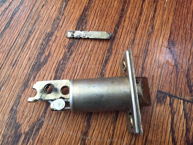 Thank you for the photographs and we spoke on the telephone were you indicated that the problem was centered on a malfunctioning striker as you called it but we're going to turn it latch bolt as that is the industry standard terminology for that piece of hardware that comes out of the edge of the door itself and where you told me the edge of the door to the center of the hole was 2-1/2” and that would of course translate to the 2-?” dimension of the latch bolt which would be the Schlage 12-100 Square Corner Deadlatch, 2 3/8" Backset As seen here: