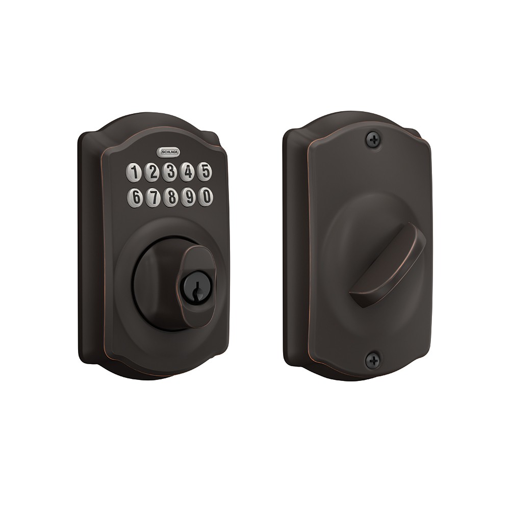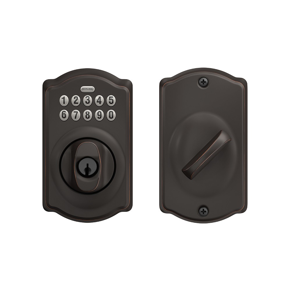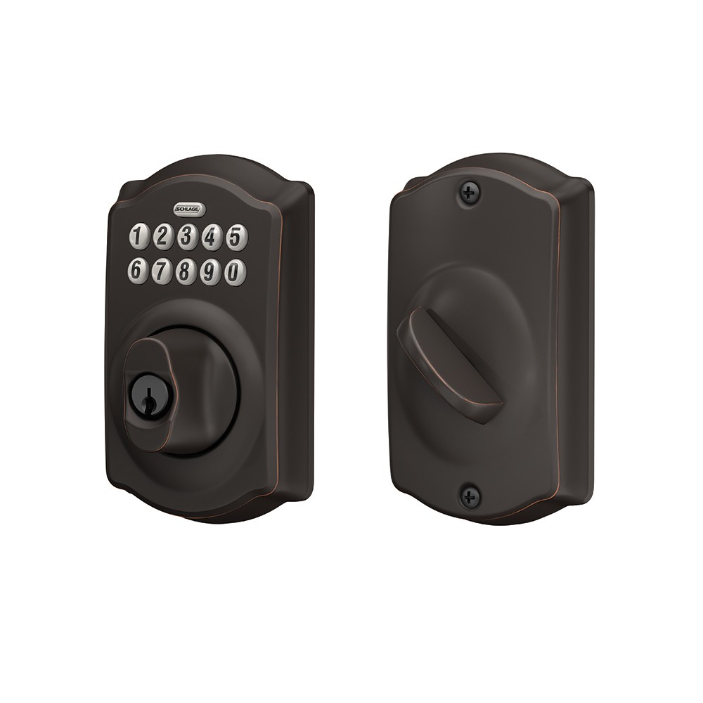 Schlage Accurate Lock Electronic Combination Key Override Sliding Door Deadbolt BE365 x CAM x 161PDL x 2-3/4" x Aged Bronze Finish