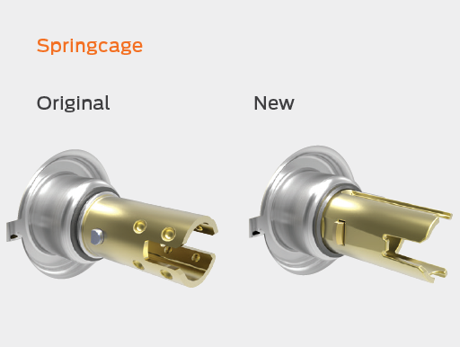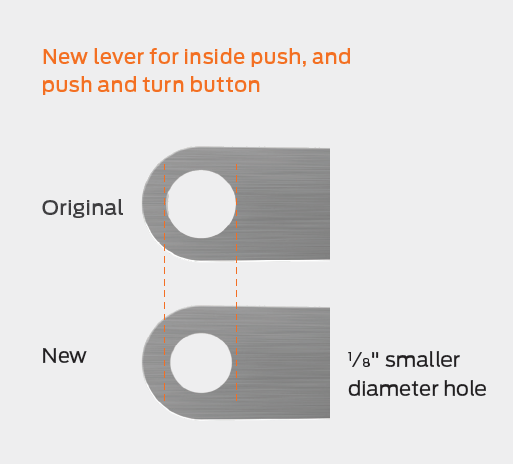 See attached differences; springcage spindle design, lever engagement design, lever pushbutton opening, and push/push-to-turn button size and shape here: