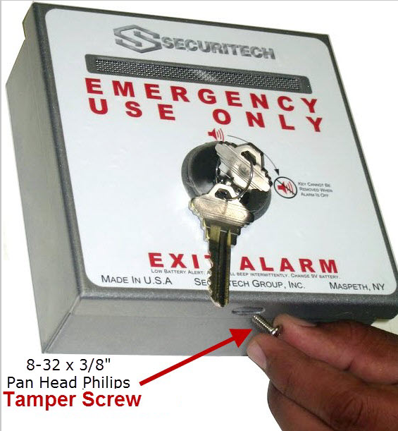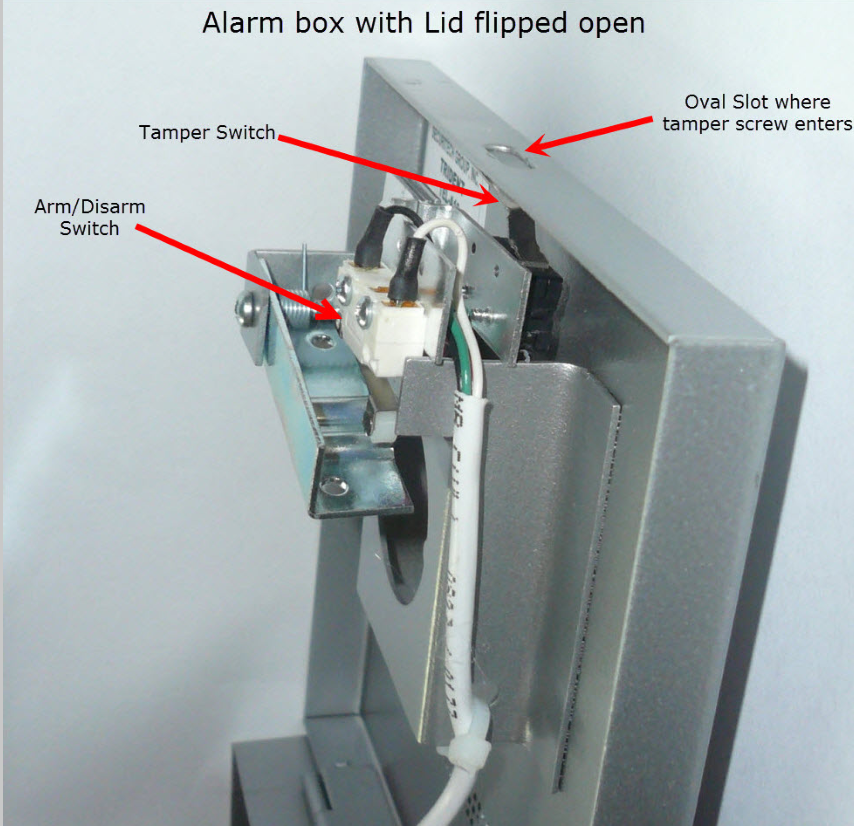 It’s the most common cause of the alarm continuously sounding when arming the alarm. The tamper screw depresses a tamper switch when the lid is shut. Here’s a view of where the screw depresses the switch. Image describing this is here: