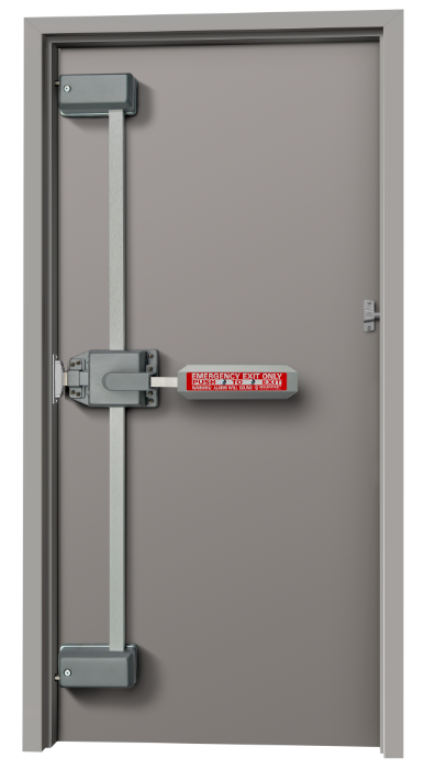 Code compliant, single motion exiting retracts all moving bolts simultaneously, as opposed to the use of slide bolts, drop bars, padlocks, etc., which violate building and fire safety codes.