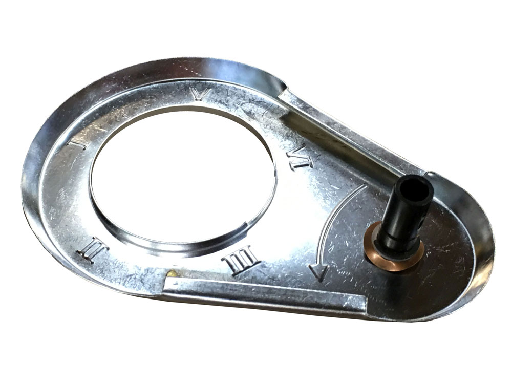 Field reversible latch; invert the lock for right hand doors; roman numerals are easily read in either orientation