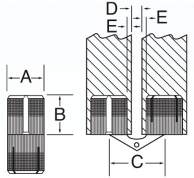 A 10mm; B 11.5mm; C 15.7mm; D min. 2mm; E max. 1.8mm