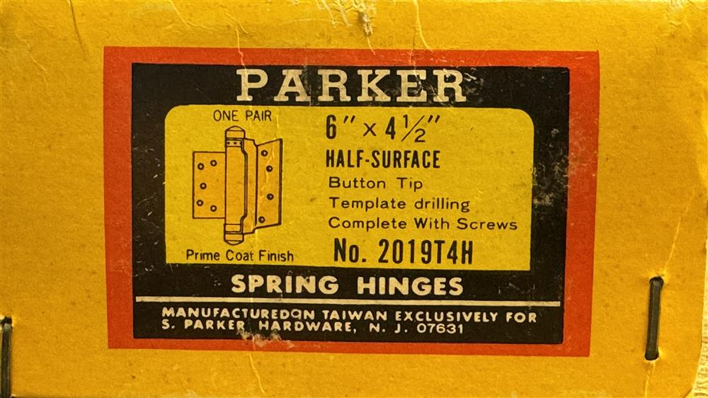 S.Parker 2019 Half Surface Single Action Spring Hinge, 4-1/2" x 5-1/2" - Prime Coat (Pair)