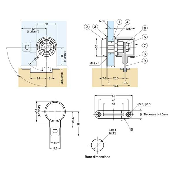 304 Stainless Steel Cam, Counterplate and Front Plate, Brass Front Ring, Polypropylene Case Cover and Ring