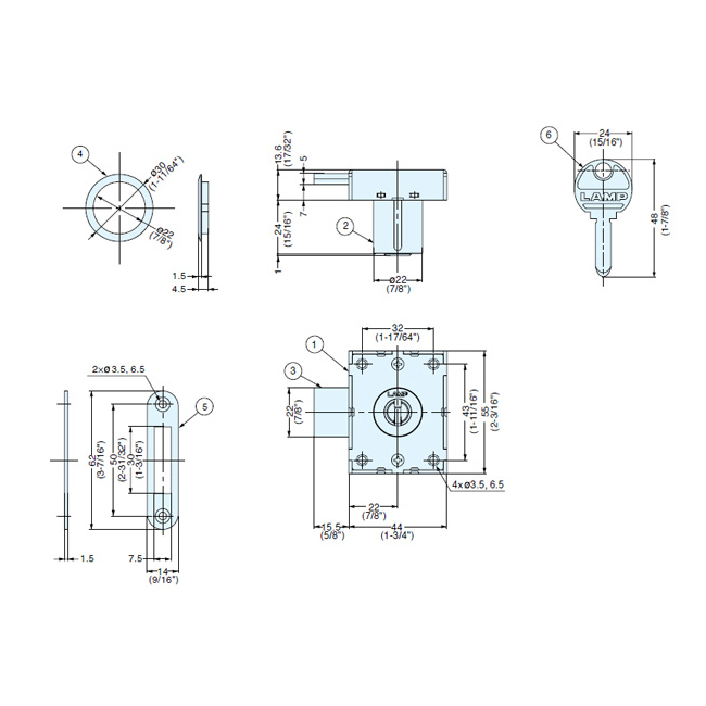 Sugatsune America SL8810-24 Cabinet Lock, 7/8" Cylinder Length - Satin Nickel Finish