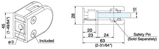 Sugatsune America SL9303VA2 Half Moon Glass Clamp, 1-3/4" Overall Length - Satin Stainless Steel Finish