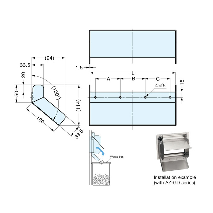 Sugatsune America SLAZ-SLP310 AZ-GD Series Guide for Multi-Purpose Lid - Stainless Steel Finish